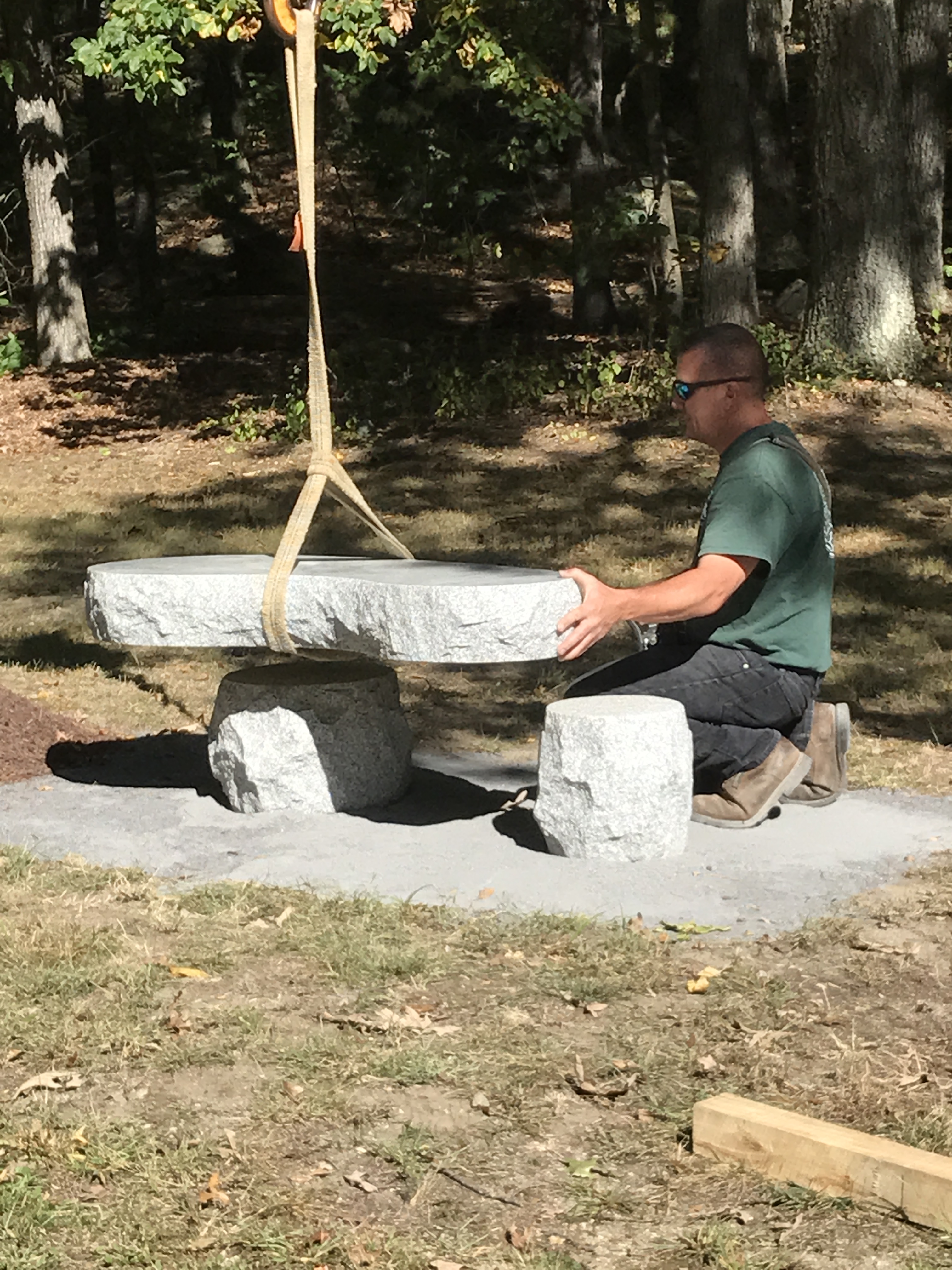 Workmen delivered our raw materials to the Park and helped to assemble this beautiful Memorial Bench that will be a proud feature of the personalized garden and the new town park we lovingly tend to.