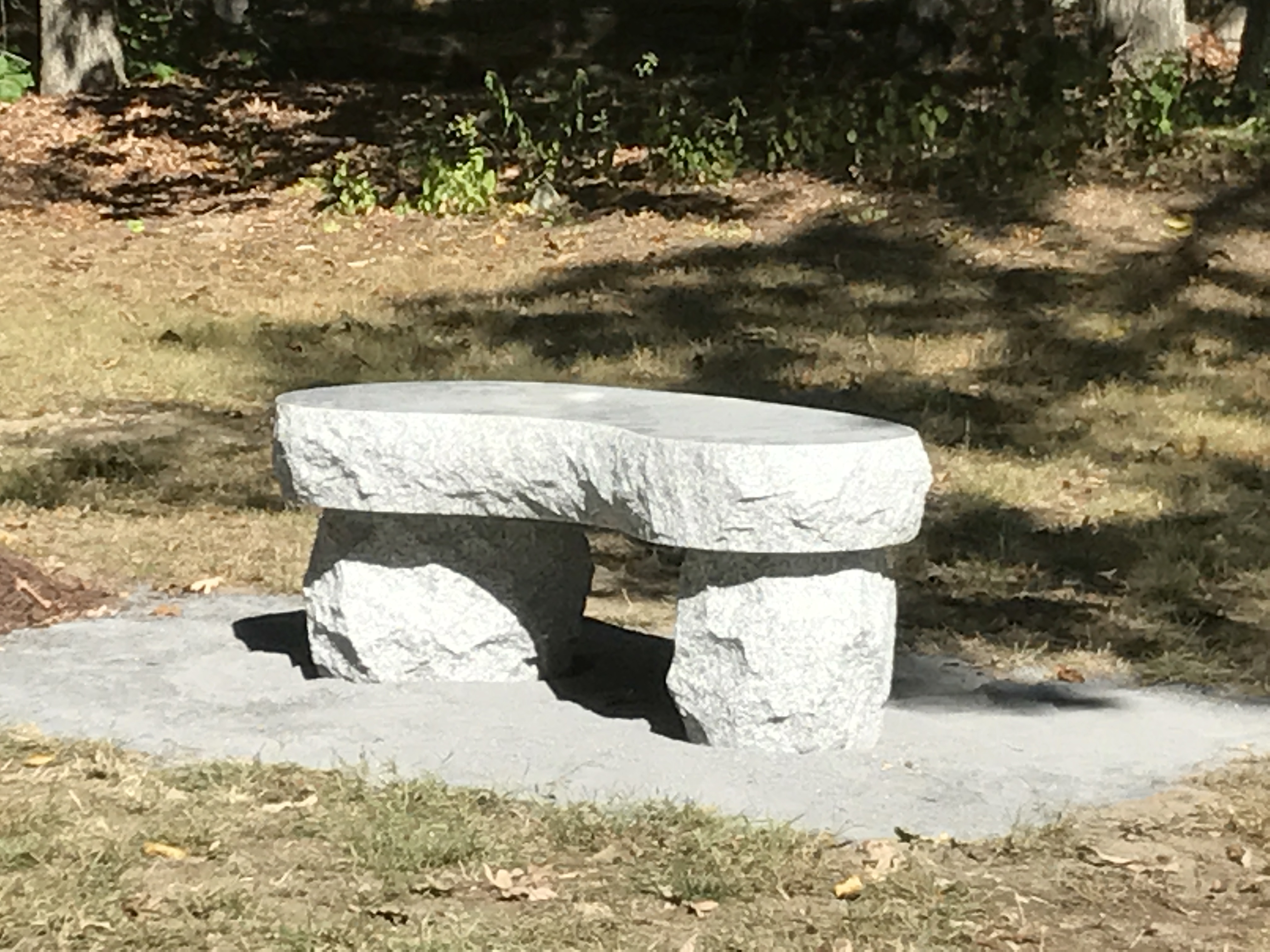 The beautiful Memorial Bench and “We Remember” marker are proud features of the memorial garden at Nobscot Park.